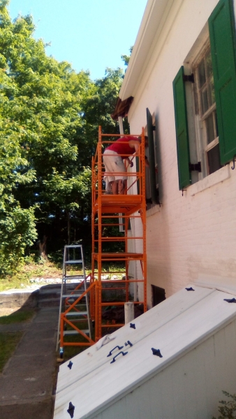 Meanwhile, Brett took advantage of the scaffolding being set up to paint exterior window trim.