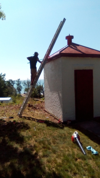 And, if that wasn’t enough, Mark began carefully removing moss from the 1910 Assistant Keepers Quarter’s elderly cement asbestos tile roof.