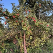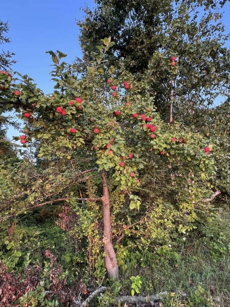 The antique apple trees continue to do well. They got a minor trim from the closing team this week. While the ideal time to trim is late winter, they seem to survive our delayed pruning. Look at all that fruit!