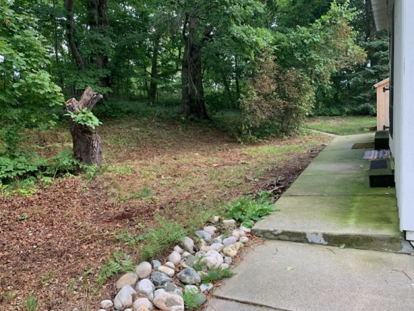 Meanwhile, James has been at work mowing, weed-whacking and edging. One can see from the color variation on the sidewalks that he removed a lot of extraneous material. Not only does this look nice, but it will help minimize water accumulation and freeze/thaw damage.