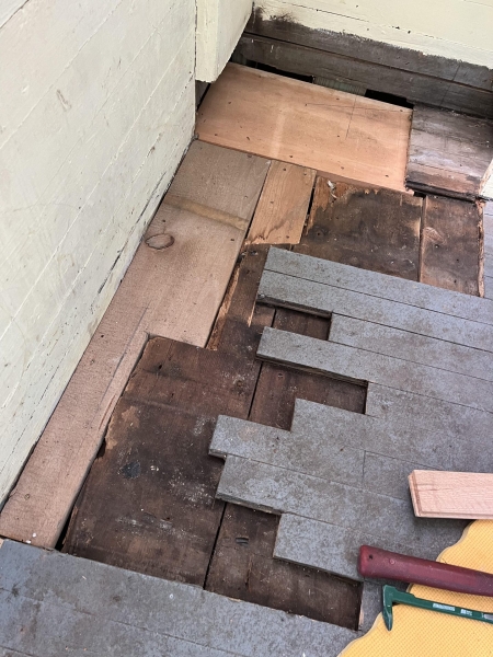 The original construction is all “true dimension” lumber so repair parts will need to be fabricated to fit. This is another of those “bigger than a breadbox” projects one runs into maintaining historic buildings.